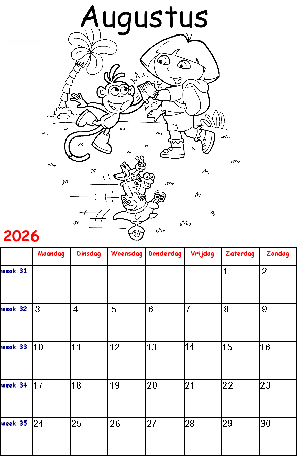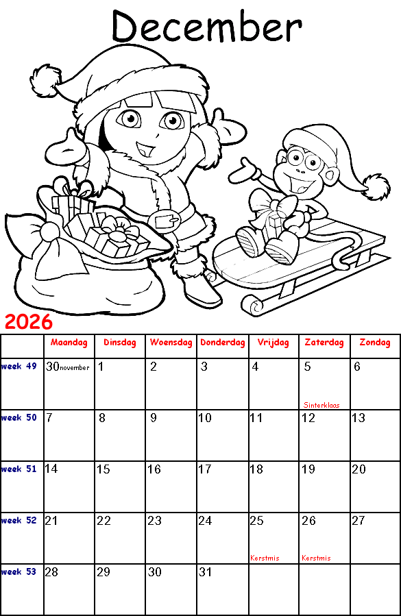 Dora the Explorer kalender 2026
