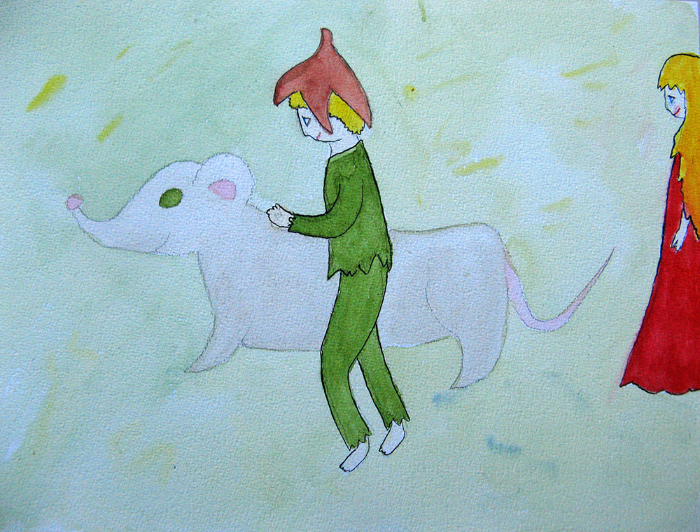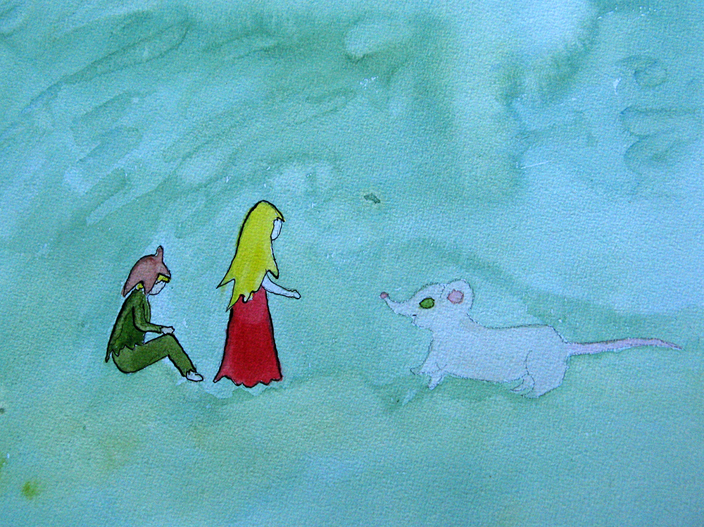 Dat wilde mevrouw Muis wel eens zien, en gevieren gingen ze naar de Potscherf. Heel mooi voor mijn kinderen, zei mevrouw Muis. Meneer Muis begon wat zorgelijk te kijken. Maar na wat gesmoes met zijn vrouw zei hij: Mijn vrouw wil kinderen, en dan wordt het hier te klein. Jullie moeten er uit. En pardoes zette hij Kersenpitje en Beukennootje buiten. |