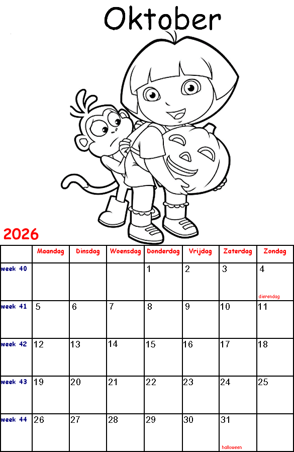 Dora the Explorer kalender 2026