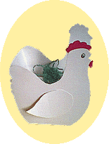 Nu kun je de haantjes aan beide kanten van het mandje plakken en klaar is je paasnestje.