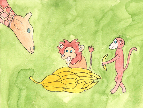 Leeuwtje kwam aanrennen, hij rook bananen!