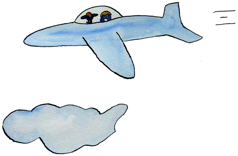 Boutje en Moertje gaan vliegen, want dat wilde Moertje zo graag. Ze zetten een helm op en hup op pad.