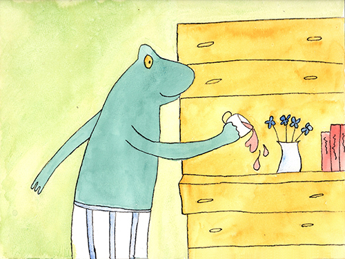 Zo gezegd, zo gedaan. Klaas de Kikker goot een kopje thee in een la.